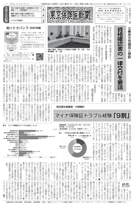 『東京保険医新聞』2025年11月15日号―公費医療の仕組み 学ぶ