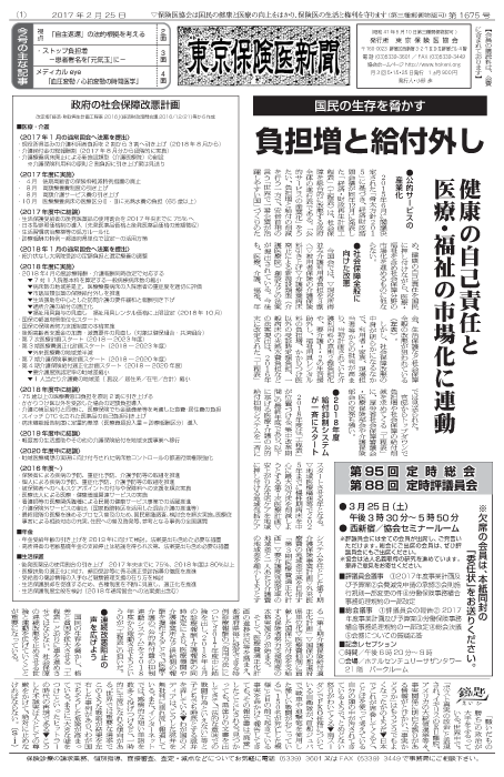 『東京保険医新聞』2017年7月15日号「骨太方針2017」PDF版を会員専用ページにて公開中!(期間限定:17.07.14~08.21)