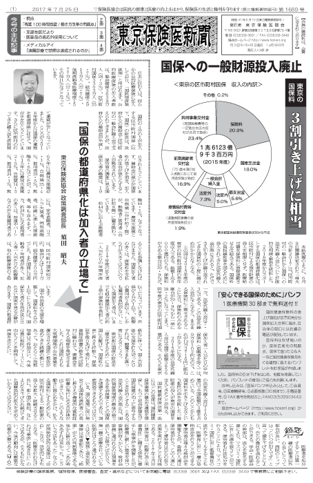 『東京保険医新聞』2017年7月25日号―東京の国保料 3割引き上げに相当PDF版を会員専用ページにて公開中!(期間限定:17.07.25~08.27)