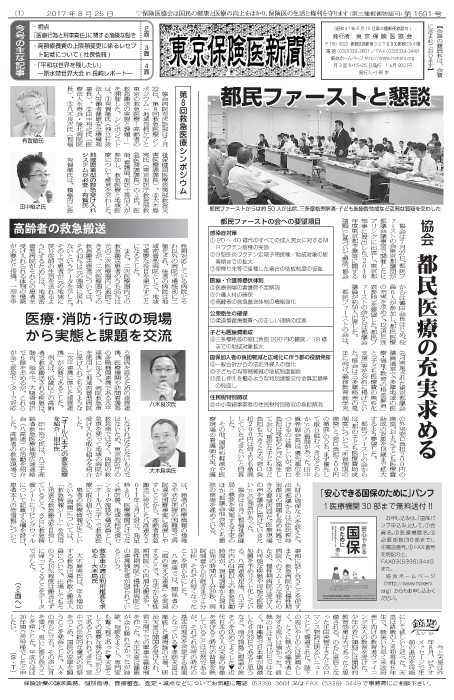 『東京保険医新聞』2017年8月25日号PDF版を会員専用ページにて公開中!(期間限定:17.08.25~09.25)