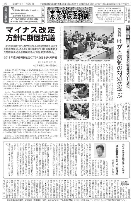 『東京保険医新聞』11月25日号―市民講座3.11を忘れずに向き合っていくためにPDF版を会員専用ページにて公開中!(期間限定:17.11.25~12.26)