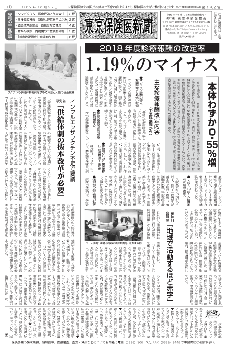 『東京保険医新聞』2017年12月25日号―2018年度診療報酬改定率 PDF版を会員専用ページにて公開中!(期間限定:17.12.25~18.1.26)