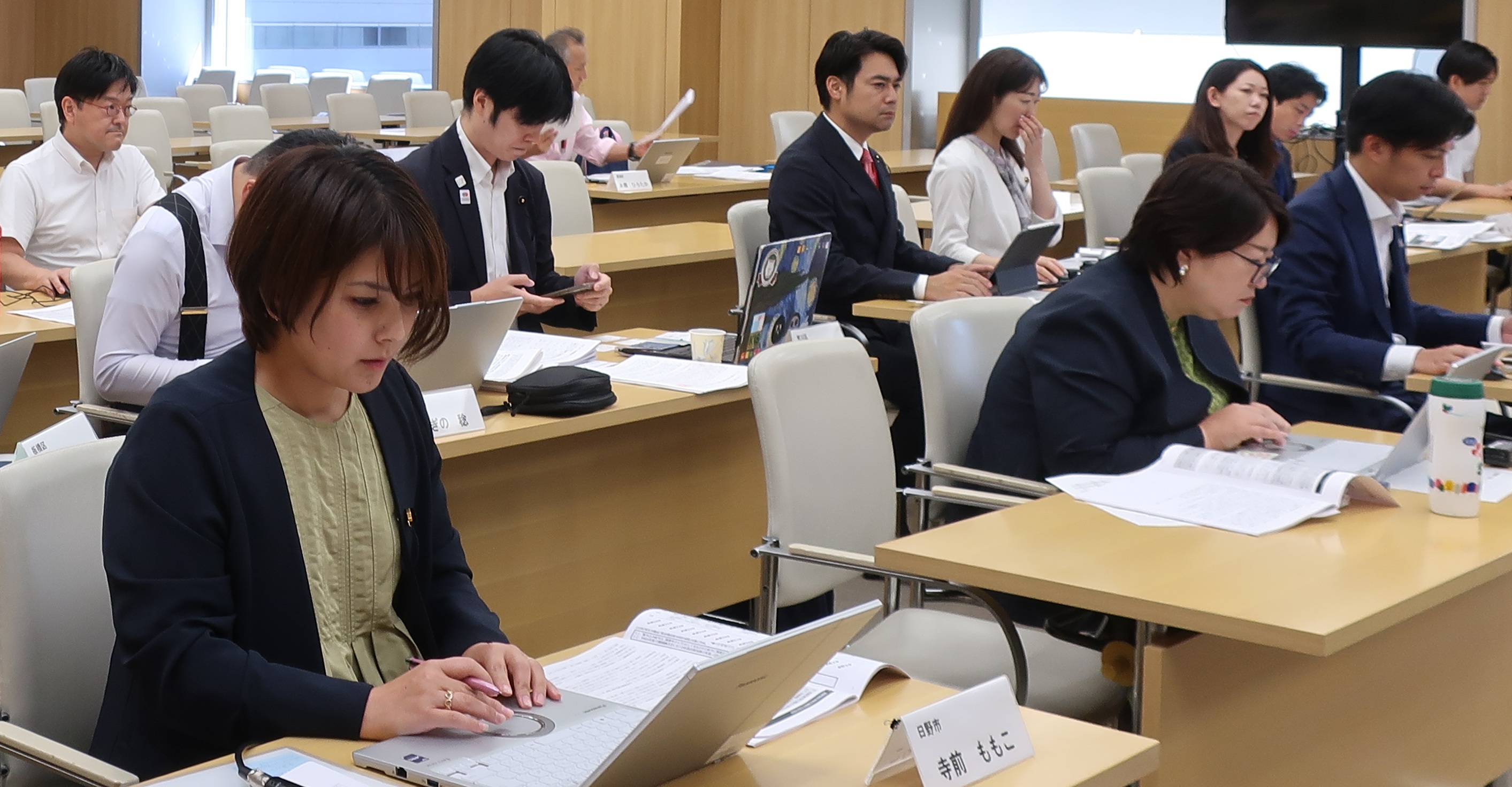 都議会第一会派の都民ファーストの会から14人が出席した(9月8日、都議会議事堂会議室)
