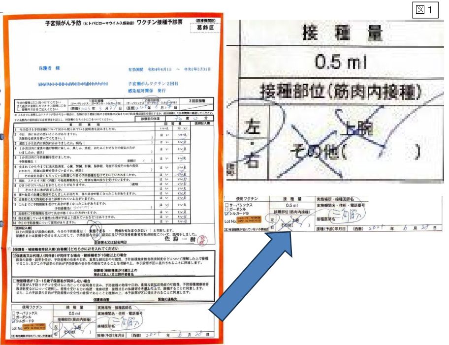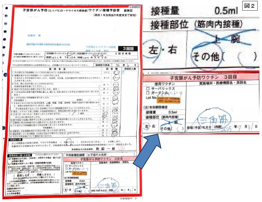 子宮頸がん予防ワクチン接種予診票「上腕」の記載を「三角筋」に正す要望書