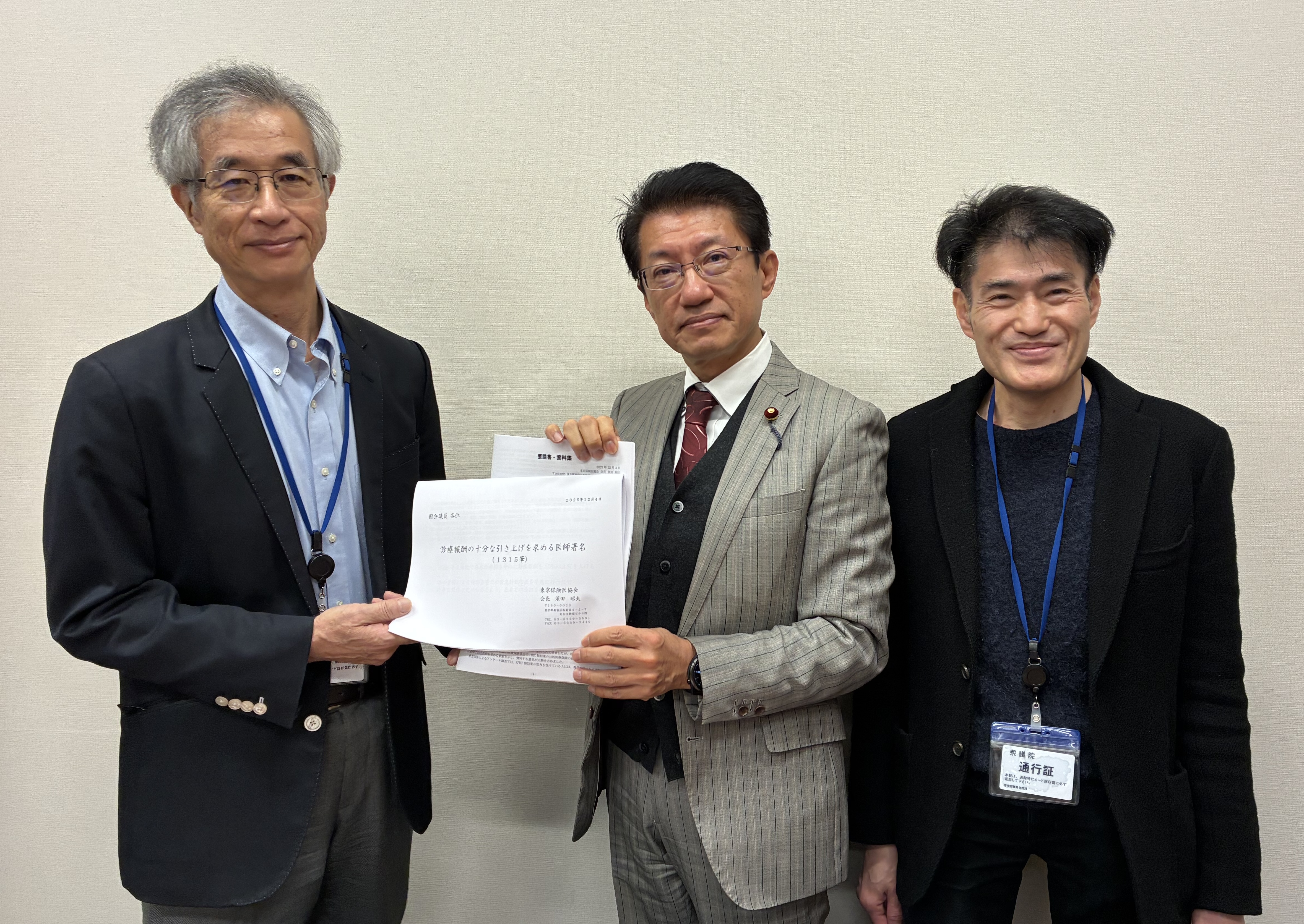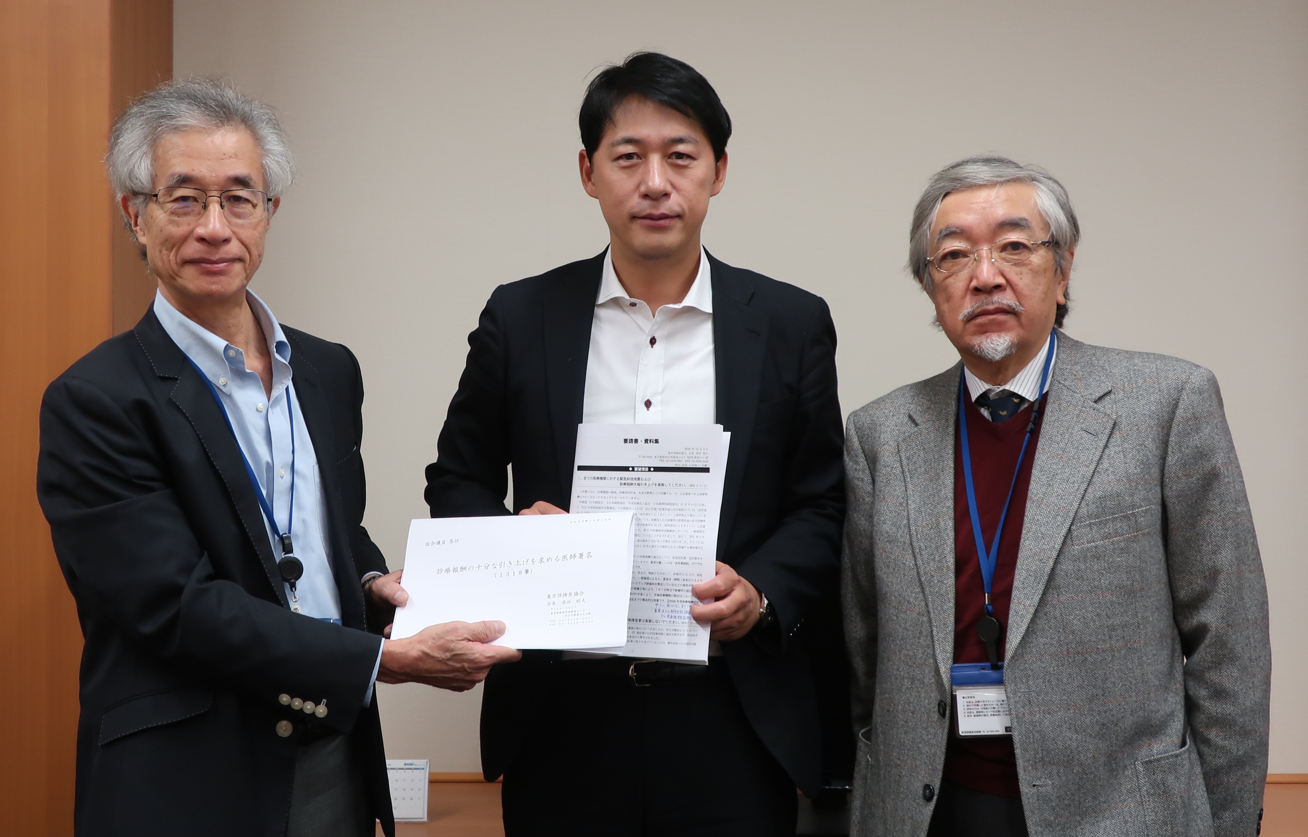①全ての医療機関に対する緊急財政措置および診療報酬の大幅引き上げ、②OTC類似薬の患者負担増阻止、③資格確認書の一律交付と保険証の新規発行再開、の3点について東京都選出の国会議員に要請した。診療報酬の大幅引き上げについては、会員署名1318筆と会員から寄せられた声も議員らに届けた。